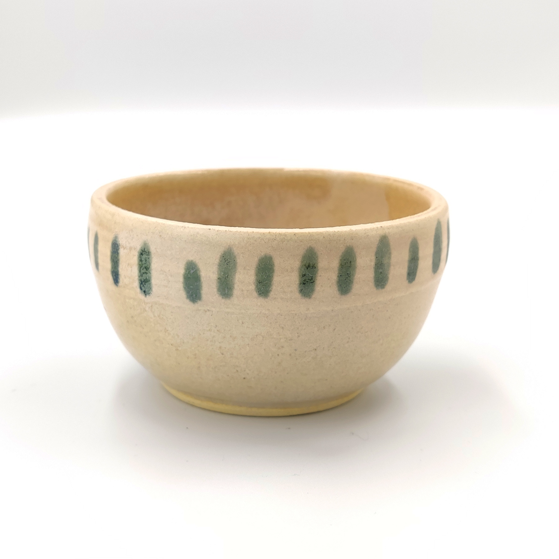 Czarka wykonana ręcznie na kole garncarskim z wysokiej jakości masy ceramicznej. Naczynie zostało wypalone w temperaturze ponad 1200 °C. Jest bezpieczne do kontaktu z żywnością, może być używane w kuchence mikrofalowej oraz myte w zmywarce, choć zalecam mycie ręcznie, aby uniknąć ewentualnych uszkodzeń mechanicznych np. obtłuczonych rantów.