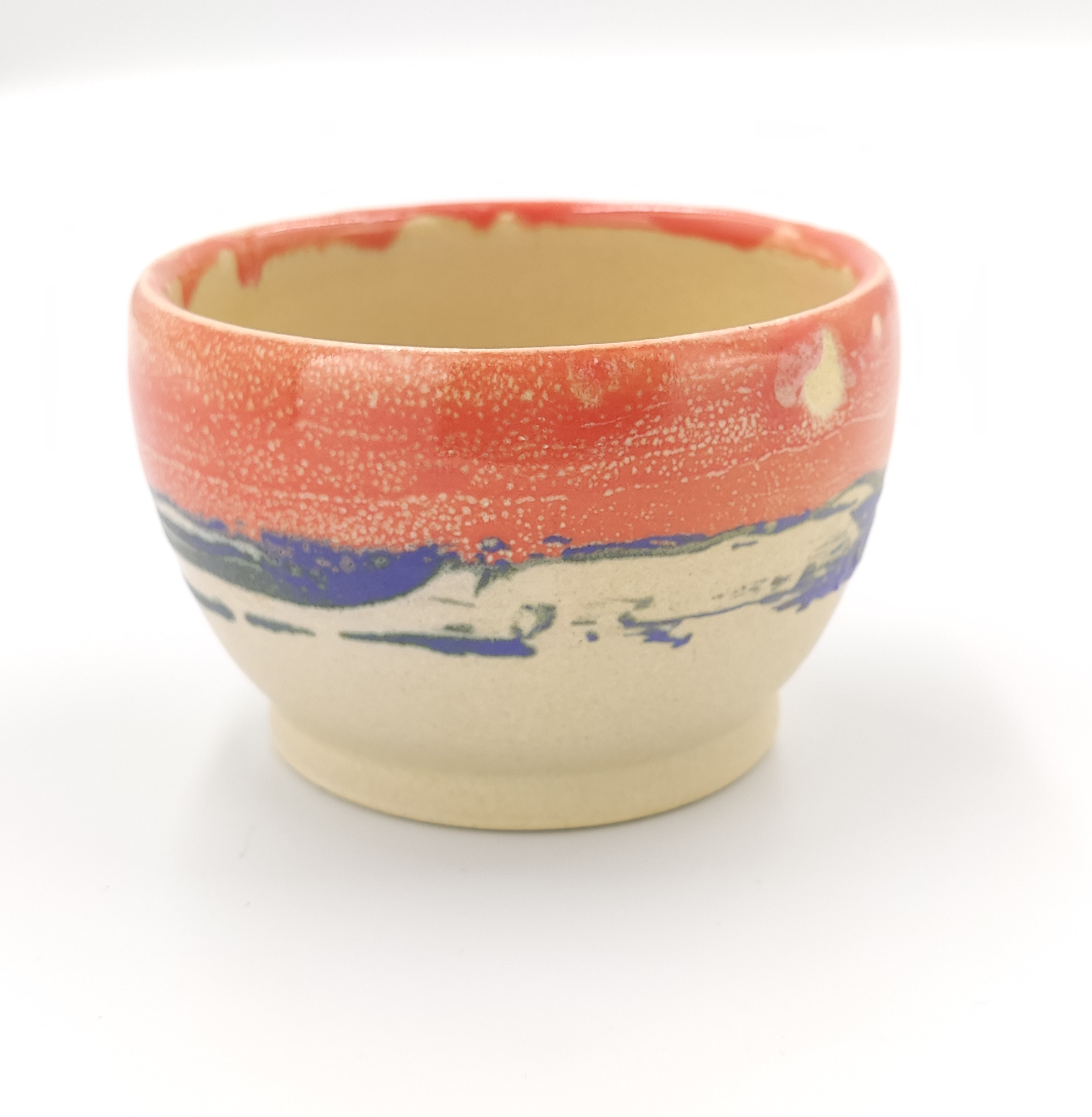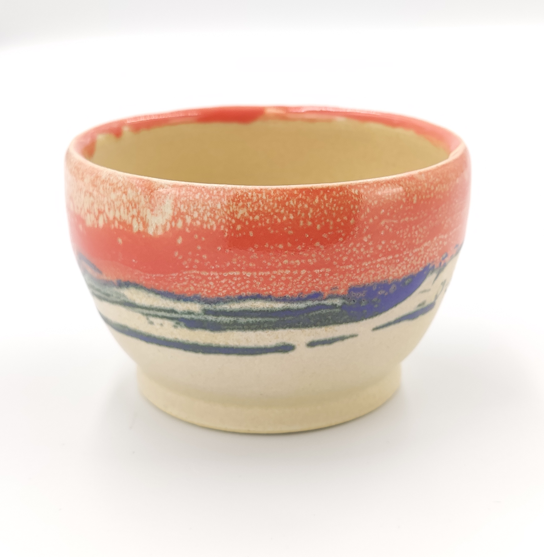 Czarka wykonana ręcznie na kole garncarskim z wysokiej jakości masy ceramicznej. Naczynie zostało wypalone w temperaturze ponad 1200 °C. Jest bezpieczne do kontaktu z żywnością, może być używane w kuchence mikrofalowej oraz myte w zmywarce, choć zalecam mycie ręcznie, aby uniknąć ewentualnych uszkodzeń mechanicznych np. obtłuczonych rantów.