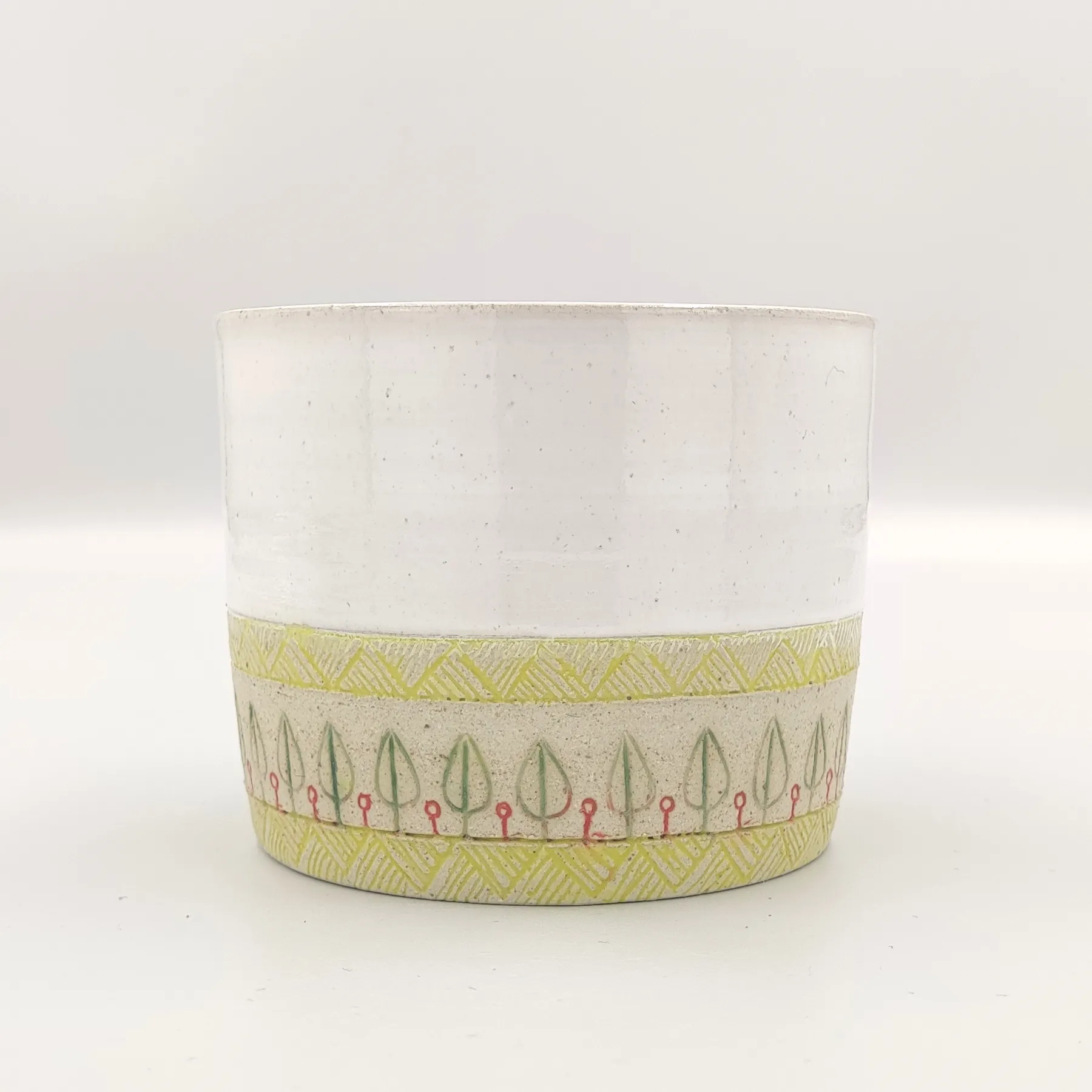 Pojemnik wykonany ręcznie na kole garncarskim z wysokiej jakości masy ceramicznej. Naczynie zostało wypalone w temperaturze ponad 1200 °C. Jest bezpieczne do kontaktu z żywnością, może być używane w kuchence mikrofalowej oraz myte w zmywarce, choć zalecam mycie ręcznie, aby uniknąć ewentualnych uszkodzeń mechanicznych np. obtłuczonych rantów.
